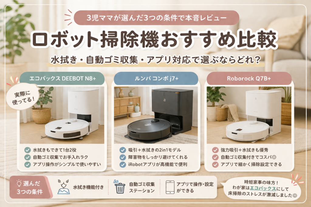 | 項目 | エコバックス N8+ | ルンバ コンボ j7+ | Roborock Q7B+ |
